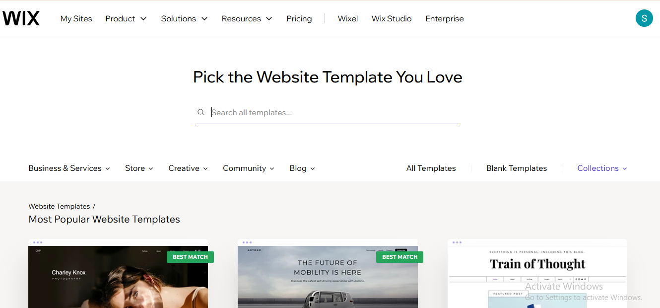 Wix has 900+ customizable templates for diverse industries, including e-commerce, blogging, restaurants, real estate, travel, education, and health and wellness.