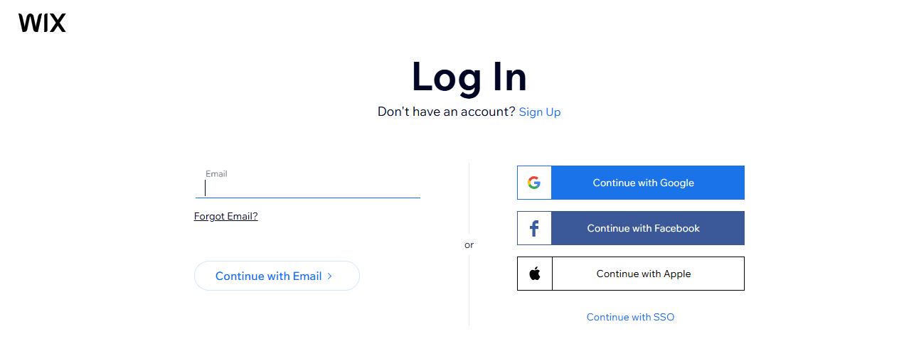 Setting up your account is pretty simple. Click “Get Started” on the homepage and sign in to your Wix account using your email and password.
